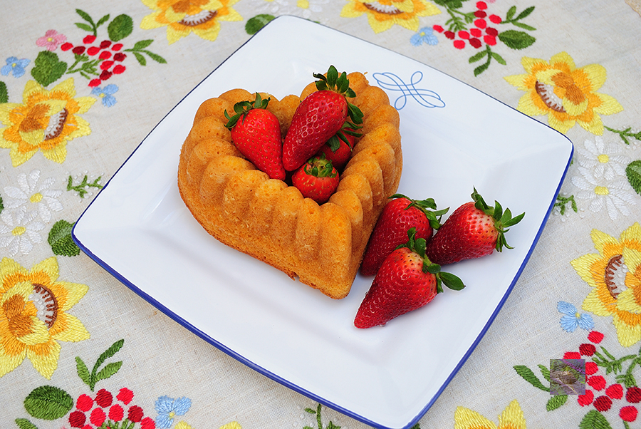 Pour the mixture in a greased baking pan and place it in the oven (180° C) for about 40 minutes. Then leave the carrot bundt cake to cool on a grill. Decor your carrot bundt cake the way you prefer, by using icing sugar or a cheese cream for example, or by making a glaze made of chocolate or lemon juice. My carrot bundt cake was decorated simply with fresh strawberries and no more sugar.