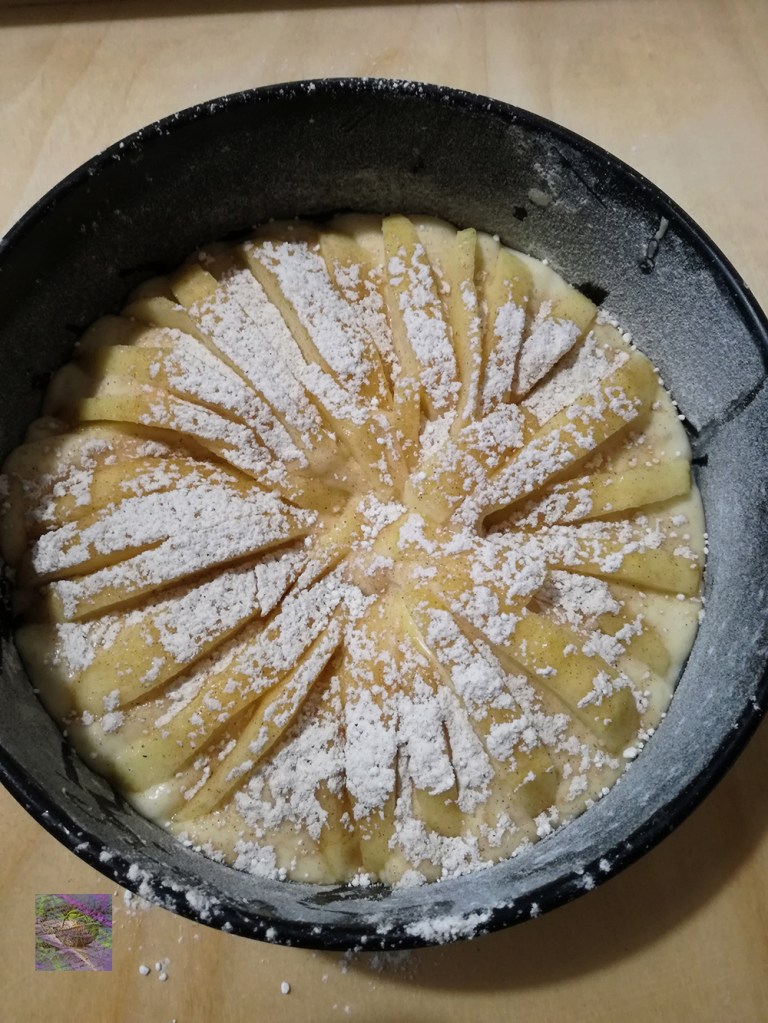 In the end, you may sprinkle more icing sugar on the apple cake if you like or serve it with some vanilla cream if you like best.