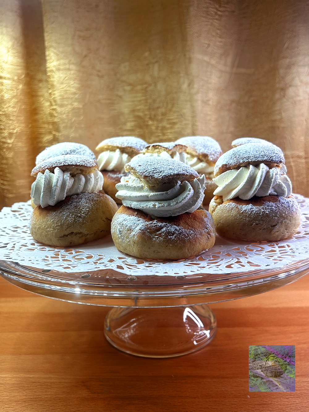 This afternoon we baked delicious fluffy semlor. Now they are ready to be enjoyed. Tomorrow we will start distributing them to family and friends. Who wants some?