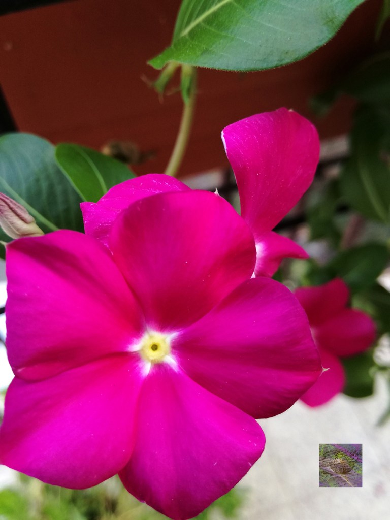 Vinca flowers on the balcony of August