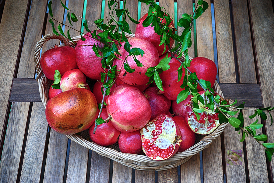 A basket of pomegranates from the garden: a generous harvest in October