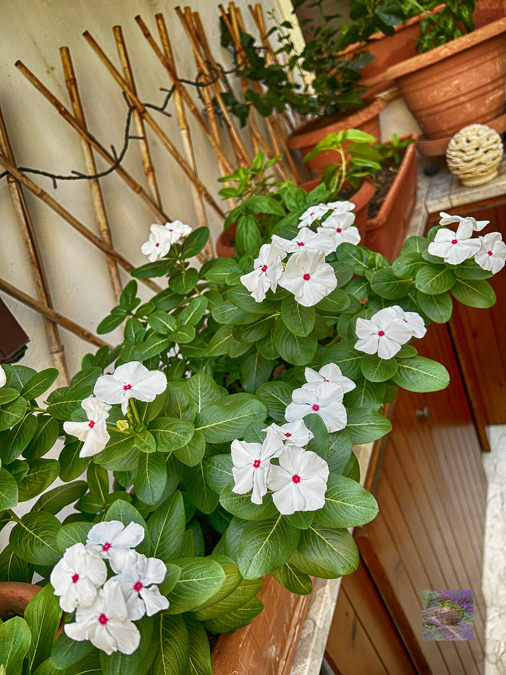 After a year, graceful vincas are blooming again in the green terrace and more and more small plants are going to bloom. It seems they found their ideal environment for the Autumn season.