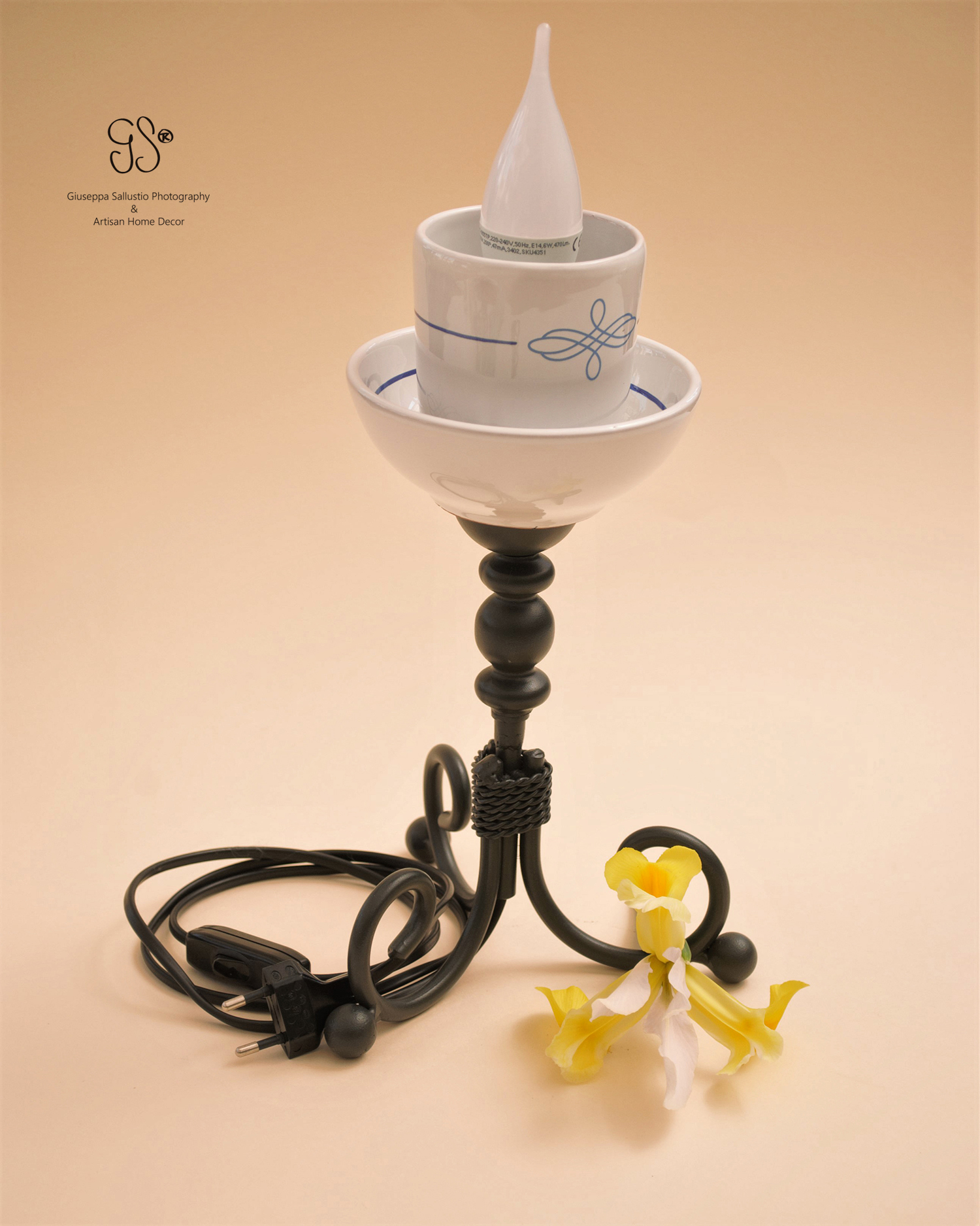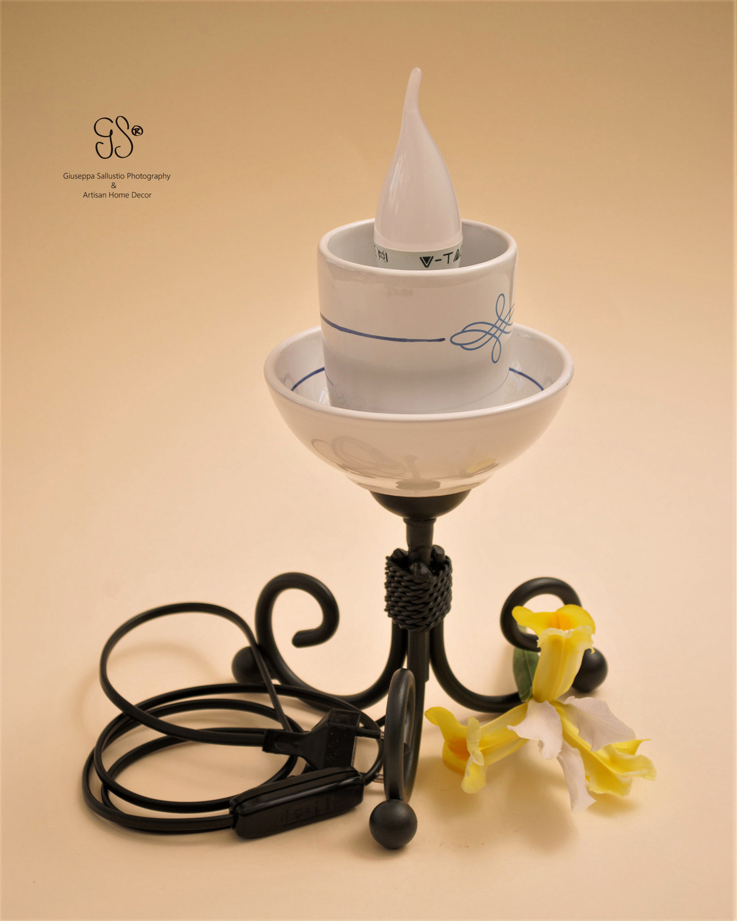 Welcome. We are glad to introduce our beautiful hand made lamps made of high quality ceramics and fixed on a wrought iron holder. Each of them is an artisan product. They are equipped with an electric circuit and therefore ready to illuminate the rooms of your home.